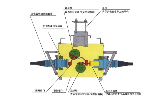 三 FZW28(VSP5)-12/630-20戶外真空負(fù)荷開關(guān)開關(guān)內(nèi)部結(jié)構(gòu)示意:
