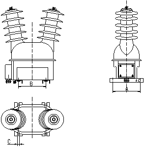 分別對應(yīng)2.1章節(jié)中的三種結(jié)構(gòu)使用,僅規(guī)定與互感器技術(shù)參數(shù)相關(guān)的外形尺寸,且兼顧相間絕緣,其余尺寸不做約束。