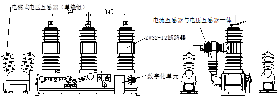 12kV普通型支柱式戶外柱上真空斷路器按照配置互感器的原理分為電磁式互感器組合模式、電子式互感器組合模式和數(shù)字式互感器組合模式。
