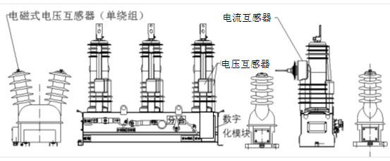 供電PT為電磁式原理,獨(dú)立安裝,電子式電流互感器模式時(shí),僅包含供電單繞組;相測(cè)量PT為電子式原理,三相獨(dú)立安裝,可進(jìn)出線雙側(cè)布置,實(shí)現(xiàn)測(cè)量/保護(hù)/零序功能。