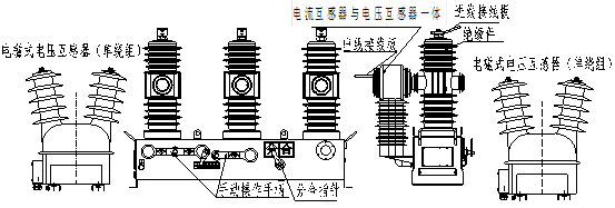 12kV普通型支柱式戶外柱上真空斷路器按照配置互感器的原理分為電磁式互感器組合模式、電子式互感器組合模式和數(shù)字式互感器組合模式。